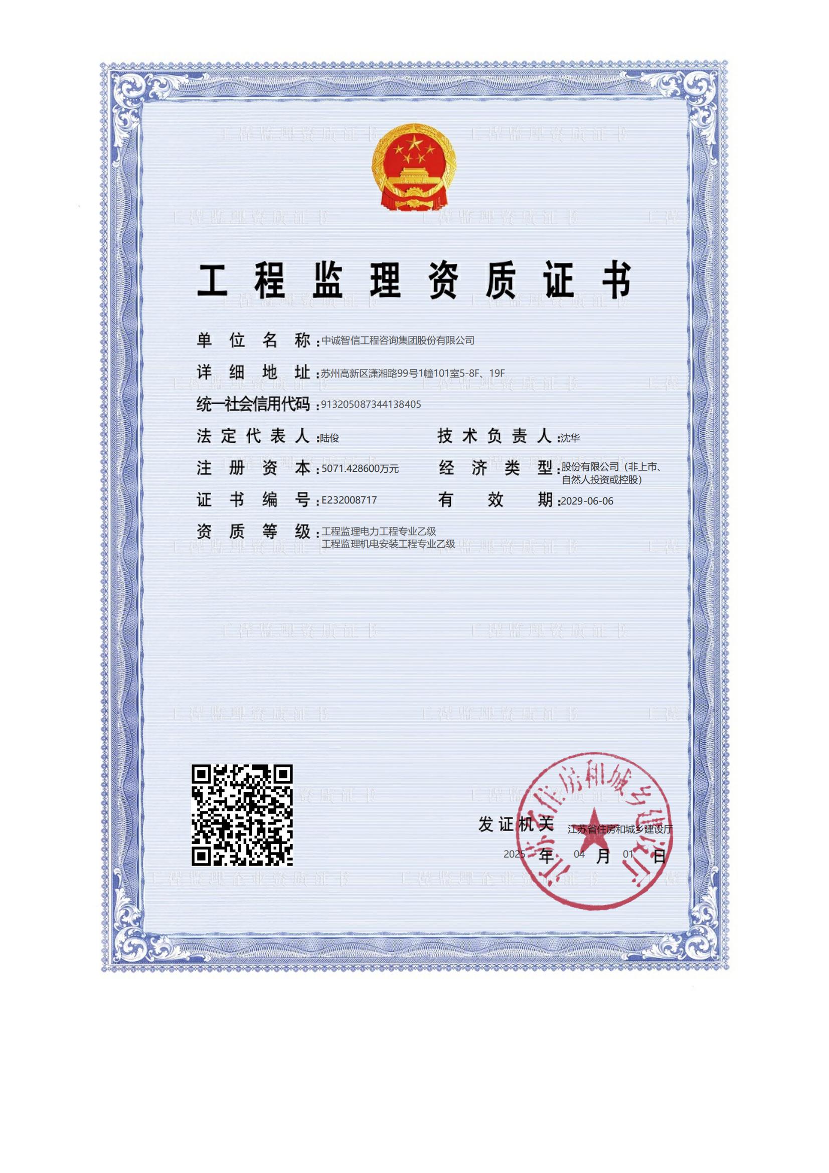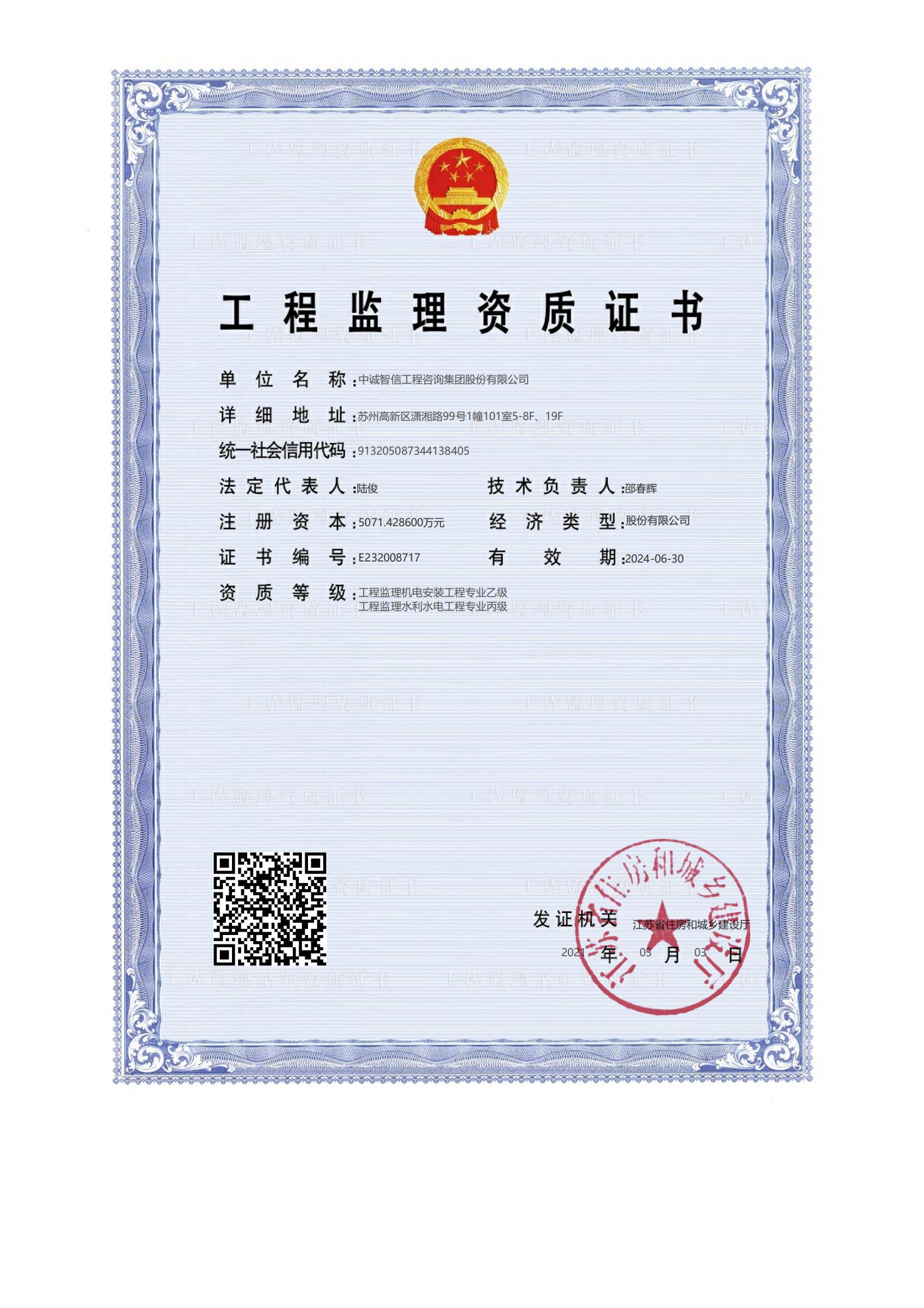 工程监理资质证书