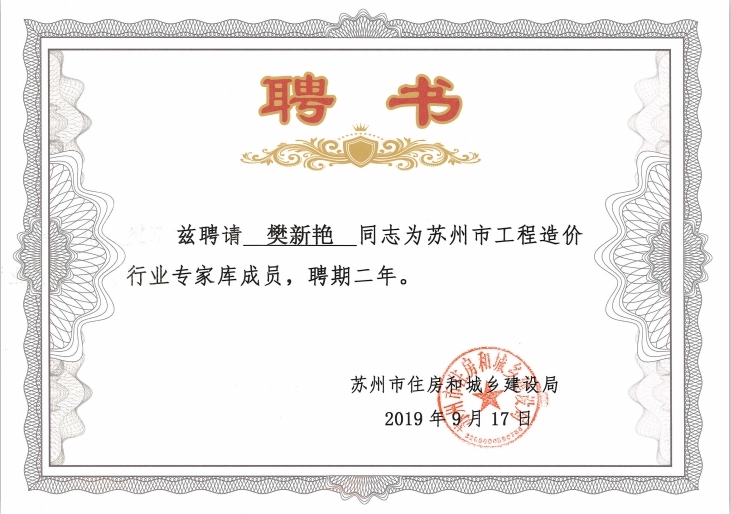 为进一步提高我市工程造价行业管理水平,更好地发挥工程造价专业人员的技术优势,近日,苏州市住房和城乡建设局重新组建苏州市工程造价行业专家库,结合各专业情况和工作需要,经认真审核和严格筛选,苏州市住房和城乡建设局公示聘任90名专家为苏州市工程造价行业专家库成员,其中中诚管理共有三位优秀工程师入选,分别是市政胡启芳、装饰樊新艳、安装赵文艳,聘期2年。