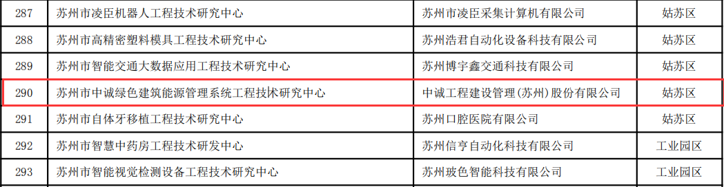 近日,苏州市科技局公布了《2019年苏州市企业工程技术研究中心拟立项项目公示》,经单位申报、主管部门审核推荐、专家评审等程序,产生了415个拟立项项目。其中,中诚管理申报的 “苏州市中诚绿色建筑能源管理系统工程技术研究中心”项目获批2019年苏州市企业工程技术研究中心立项项目。此次工程技术研究中心的获批,标志着我们的科研工作又迈上了一个新台阶。